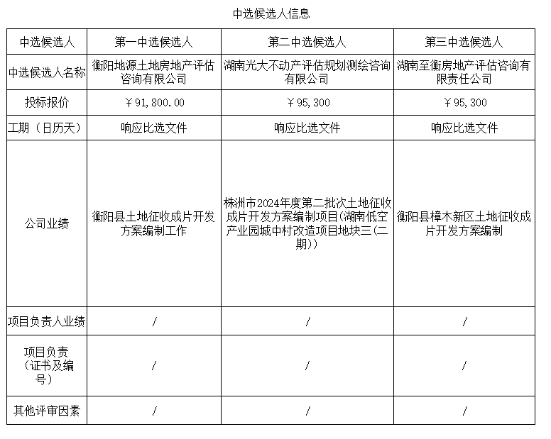 衡阳市植物园片区三宗土地征收成片开发方案编制项目咨询服务比选中选候选人公示