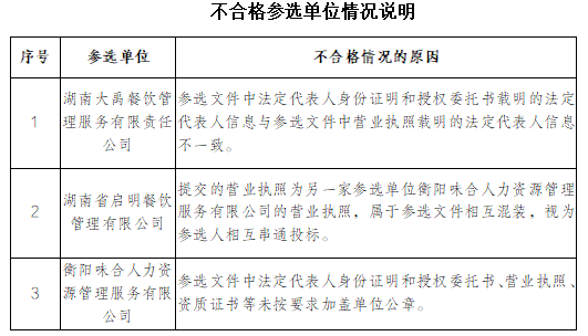 衡阳国投集团员工食堂劳务承包服务单位比选废标公告
