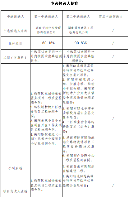 建湘项目房屋结构可靠性检测服务单位比选内部比选中选候选人公示